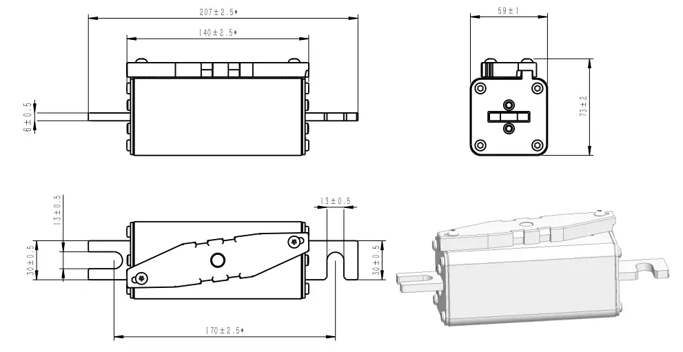| Bolted | GFEVT1500-100B-59E | 100A | 3085 | 8568 | 43 | 55 | ● | ● |