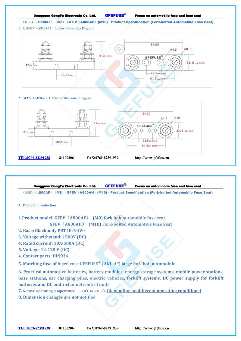 东莞市贡福电子有限公司专业制造销售太阳能光伏熔断器、新能源车用保险丝、微型保险丝、叉栓保险丝、汽车保险丝、高压保险丝、贴片保险丝、陶瓷保险丝、汽车保险丝座、汽车熔断器、突跳式温控器、汽车过载保护器,保险丝座,汽车插片保险丝。插片保险丝座,叉栓保险丝座,叉栓保险丝盒,螺栓保险丝,螺栓保险丝座,低压熔断器.直流熔断器,直流保险丝,车用保险丝,车用保险丝座等。产品通过UL CE CQC TUV REACH等认证。客户遍布广东、江苏、东莞、上海等全国各地。