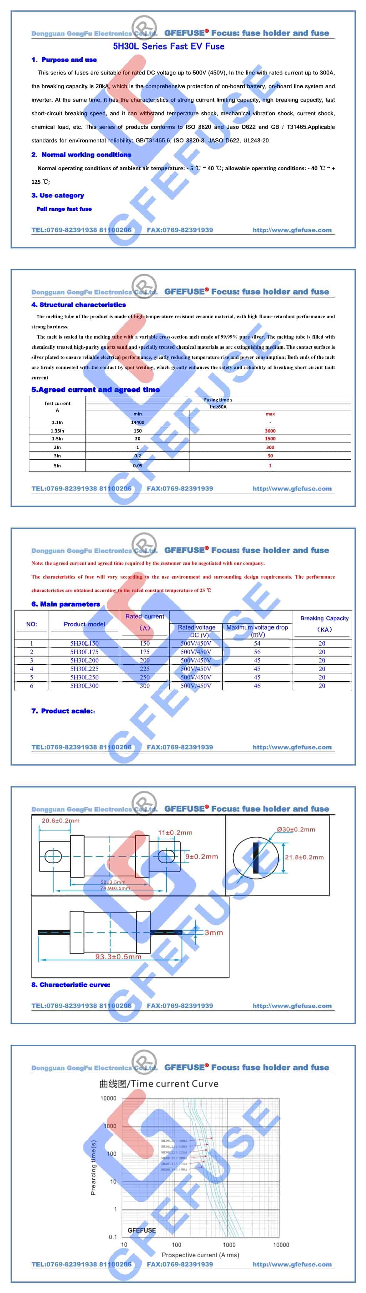 5H30L快速直流熔断器(150A-300A)500V450V