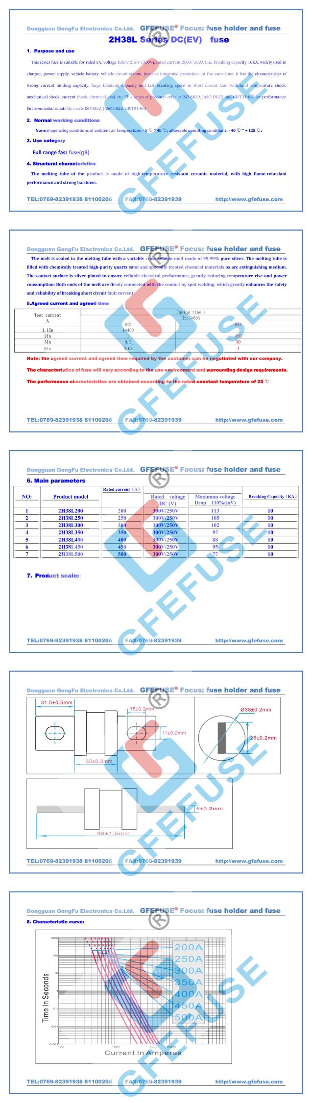 2H38L快速直流熔断器 (200A-500A)250V300V